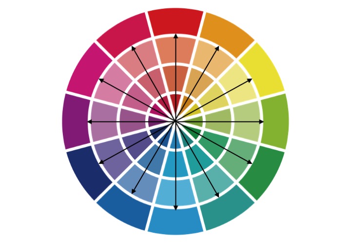 カラーホイールを理解することで相性の良い色、相性の悪い色などを知ることができます。
