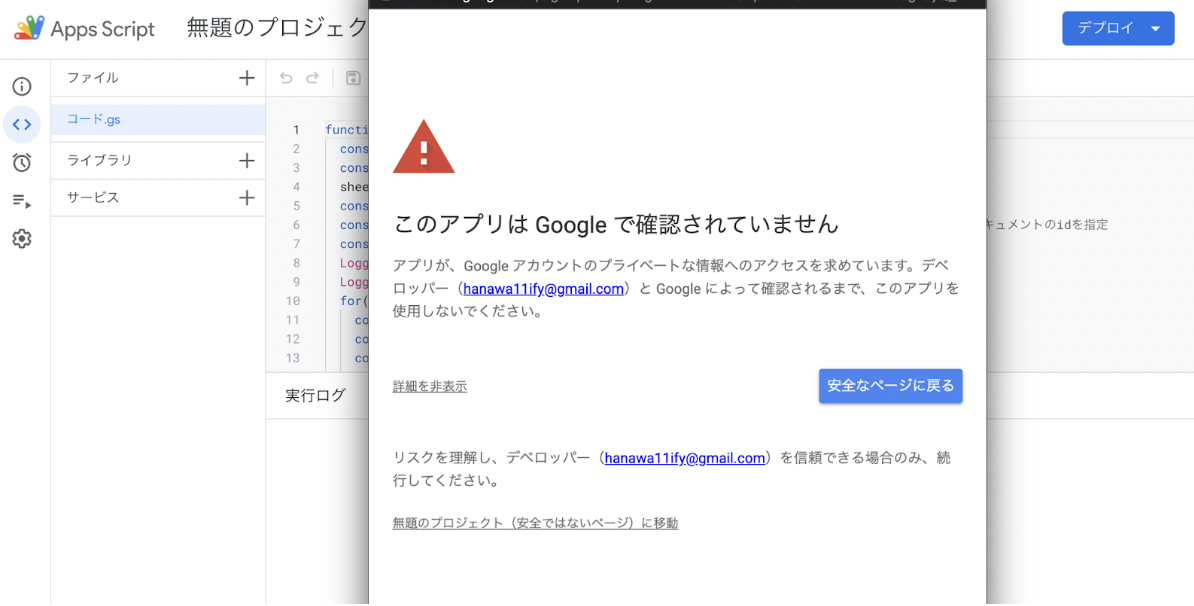 【Step8】無題のプロジェクト(安全ではないページ)に移動をクリック