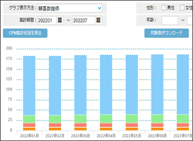 たとえば「クリニックの診察記録で、月ごとの顧客分類ステージをカウントしたいが、診察記録は1回しか残らず、Tableau Desktopでは毎月の推移が記録できない」という問題があったとします。