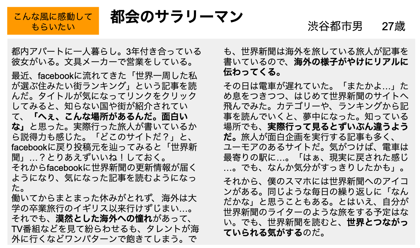 弊社が運営している世界新聞でもペルソナ(下記)を採用しています。