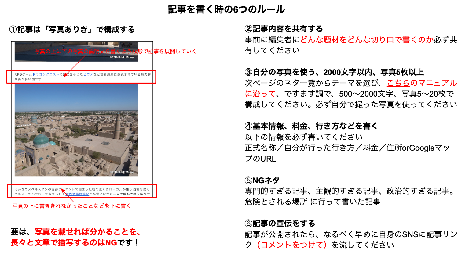 ちなみに世界新聞では下記をライターに配って徹底してもらっていました。