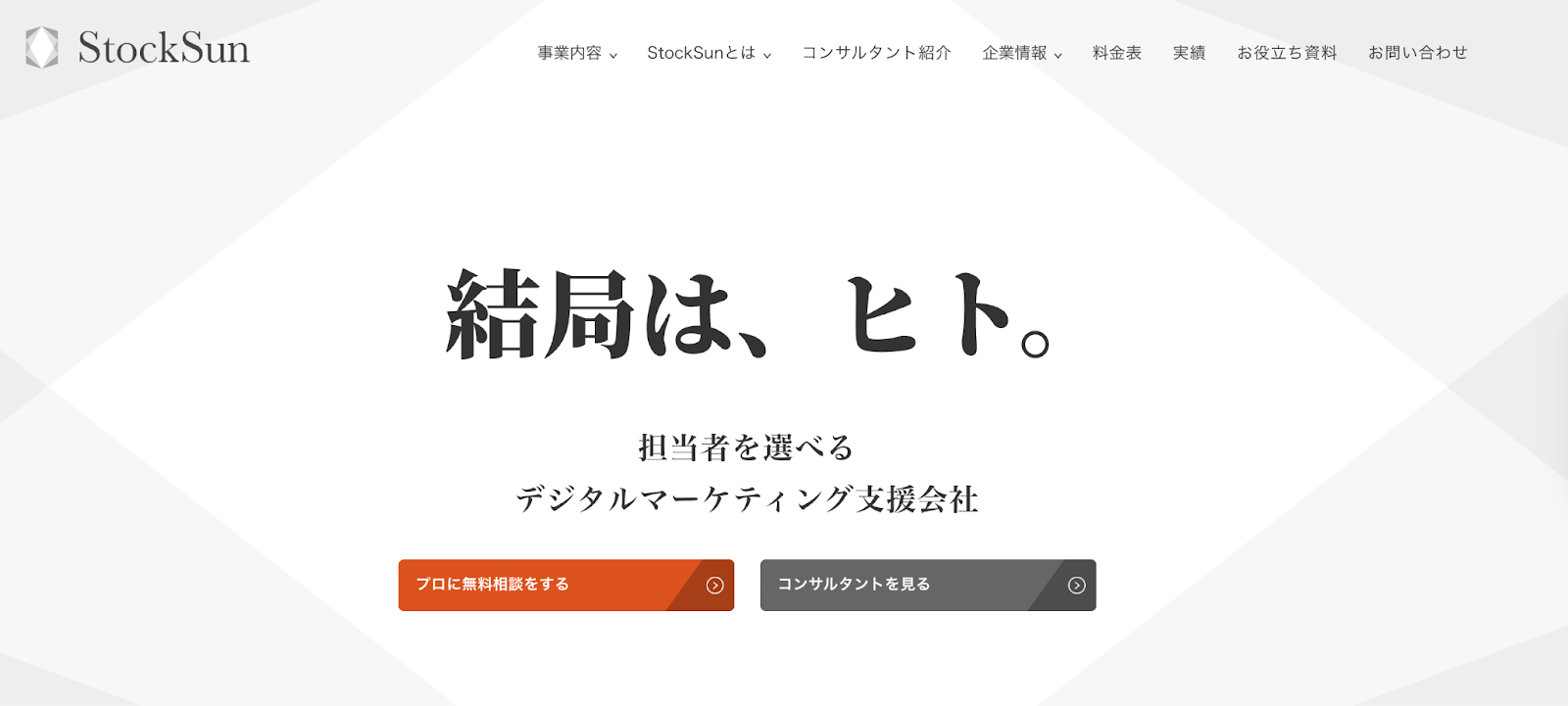 | StockSun株式会社 | 上位1%のフリーランス人材を活用。成果報酬型プランあり |