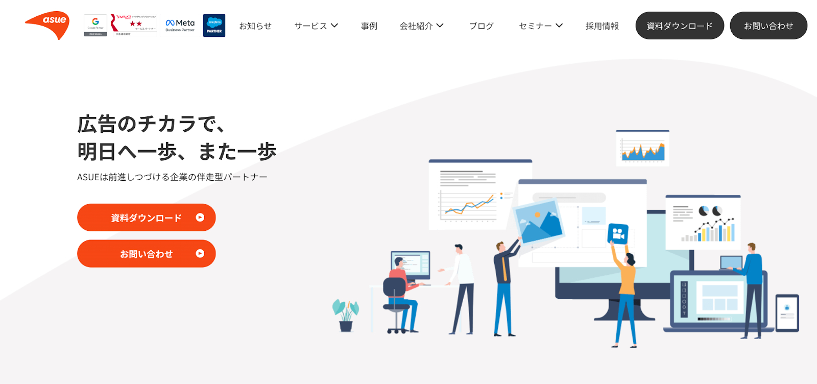 ASUE株式会社は、450社以上の運用実績と96%という高いリピート率を誇る名古屋の広告代理店です。