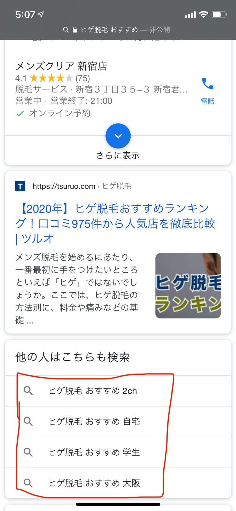 この辺のサジェストKWDで上位表示できればメインKWDの「ヒゲ脱毛 おすすめ」でも上がりやすくなります。