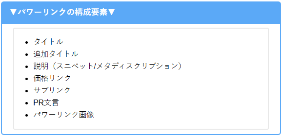 おおまかに「タイトル➡序文(スニペット)➡キーワード&リンク」の形式になっています。(詳細は以下でご説明)▼パワーリンク▼