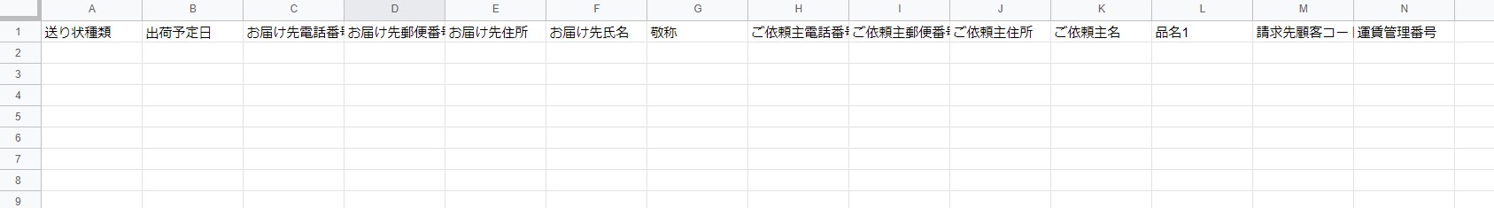 今回ヤマトのシステムはShif-JS対応なので、直接スプレッドシートからCSVをダウンロードしたものは使えず、スプレッドシートからCSV出力をする際に、Shift-JSに変換してあげる必要があります。