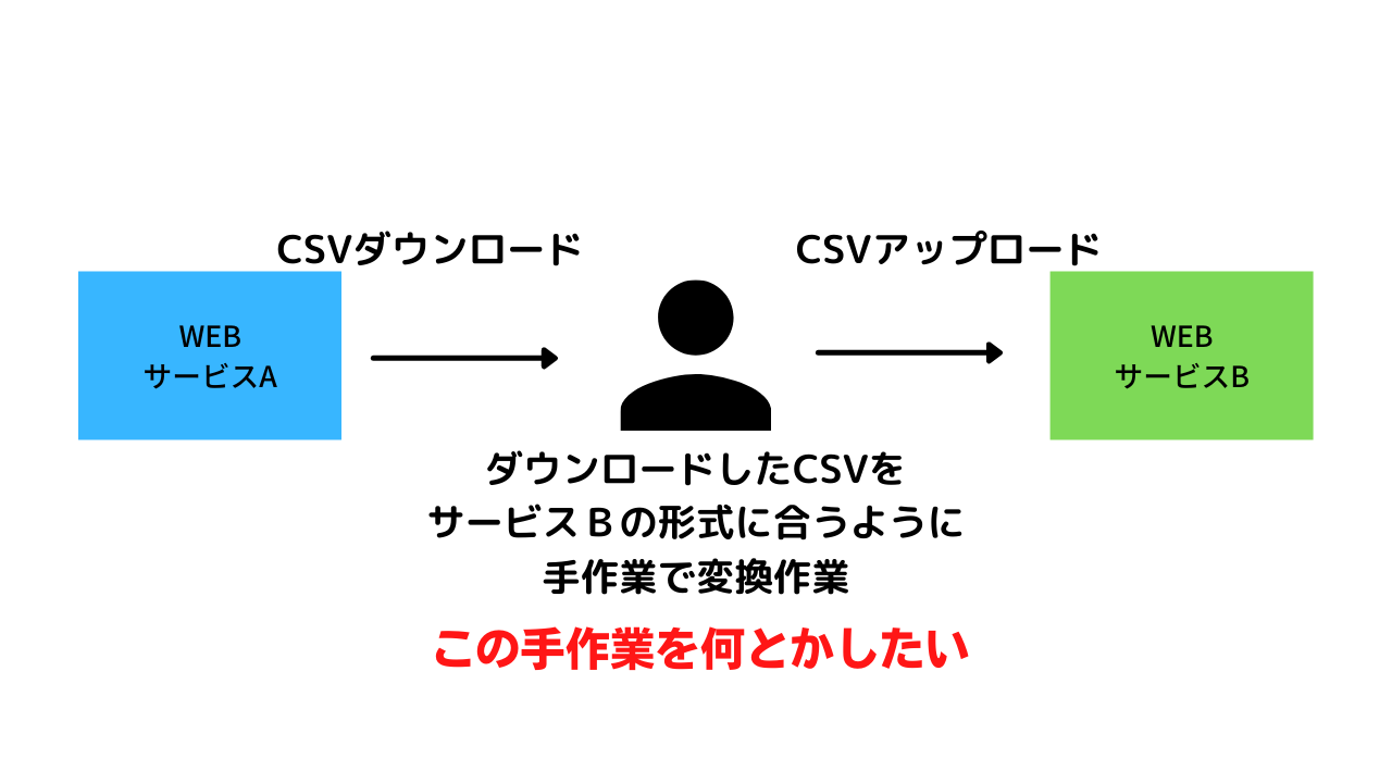 その際に、二つのシステムのCSVの型が異なるから、わざわざデータ変換の手作業が発生する、、、