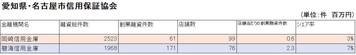 創業融資支援という枠に関しては碧海信用金庫が2.8倍の差をつけていました。