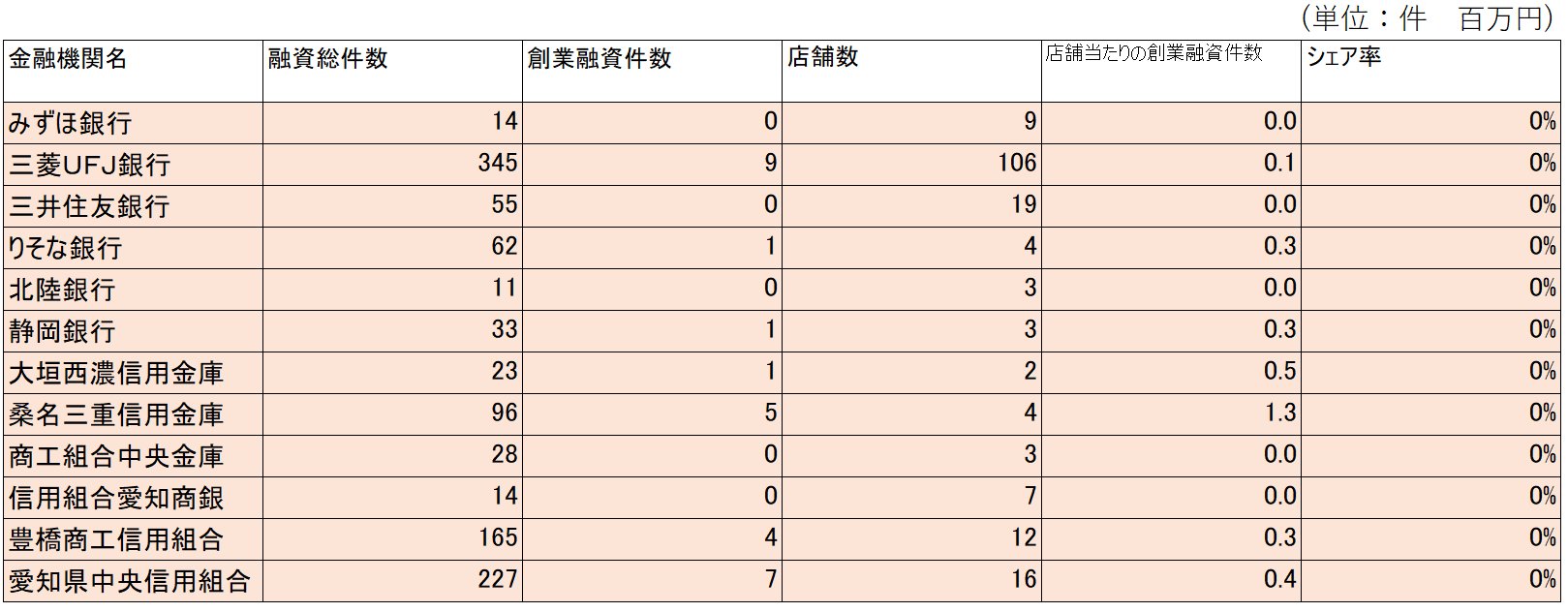 また、各銀行・信用金庫の支店数から、1年あたりの融資実績を見て検討していきます。