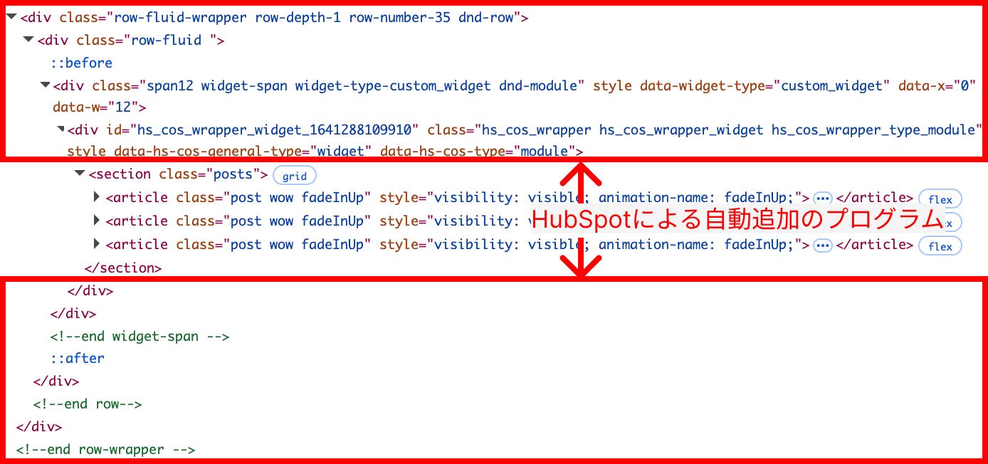 HubSpotでは、コンテンツをモジュール化して組み合わせることで、ノーコードに近い形で柔軟なページ編集が可能です。しかし、モジュールを組み込む際にはシステム的なHTMLが自動で追加されるため、結果的にコード量が増え、ページの読み込み速度に影響を与えることがあります。